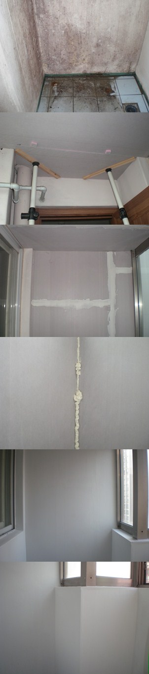 발코니 결로를 페인트용 이보드로 시공한 시공기입니다. 페인트로 마감할 부위에서 주의할 점은 그대로 표면이 표출되기 때문에 시공표면을 가능한 최대로 매끄럽게 나타내야 한다는 점입니다. 따라서 이음매부위를 퍼티로 메꾸는 것입니다.